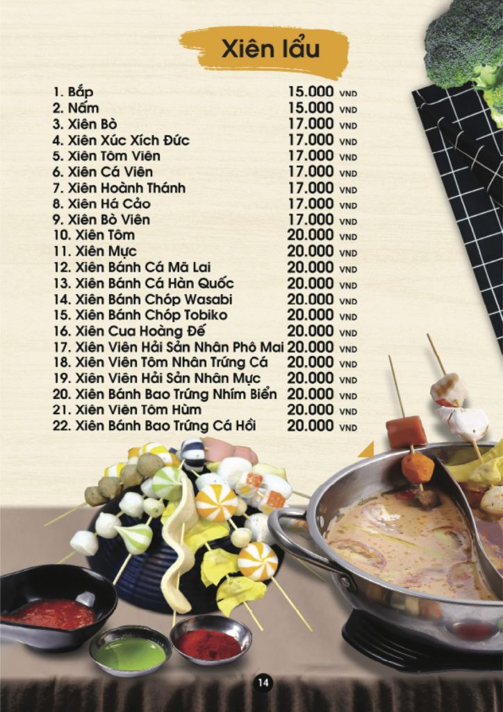 • Thực đơn